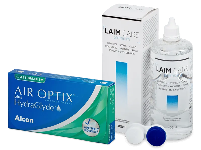 Air Optix plus HydraGlyde for Astigmatism (3 lenses) + Laim Care Solution 400 ml