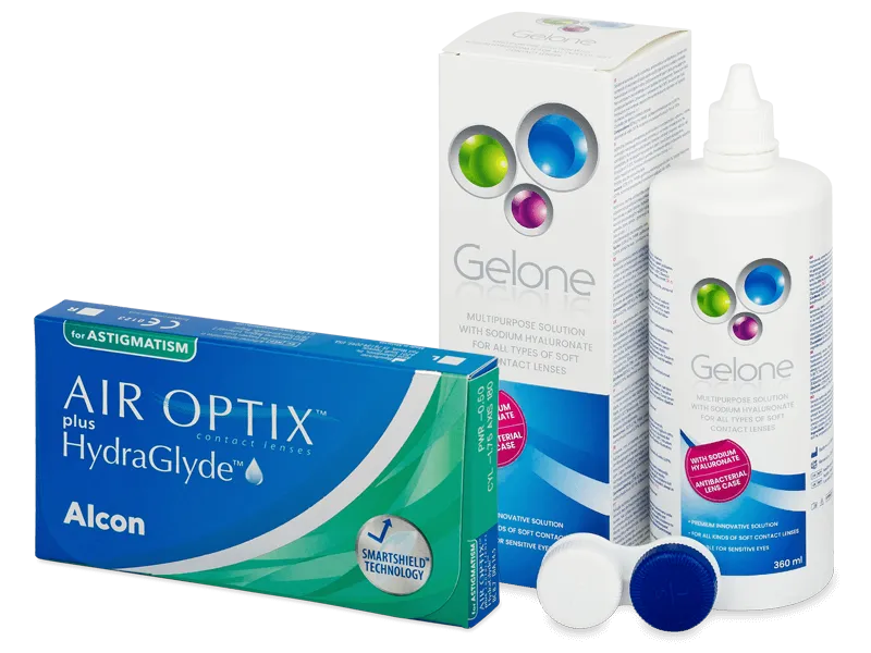 Air Optix plus HydraGlyde for Astigmatism (6 lenses) + Gelone Solution 360 ml